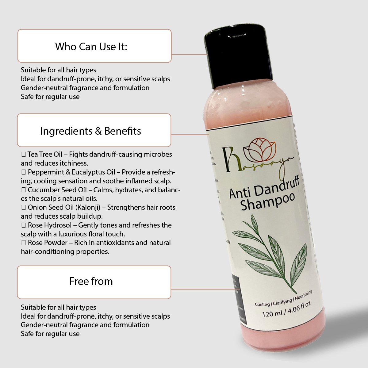 - Tea Tree Oil – Deep cleansing & anti-dandruff action